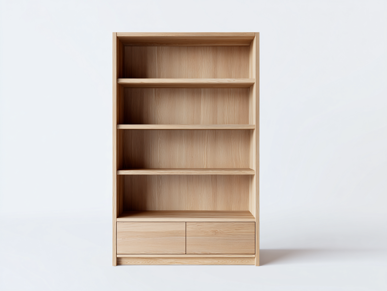 La bibliothèque est fabriquée en panneaux de bois avec une finition bois clair, mettant en valeur un veinage naturel et homogène. La conception soignée assure une bonne stabilité et une utilisation durable au quotidien.