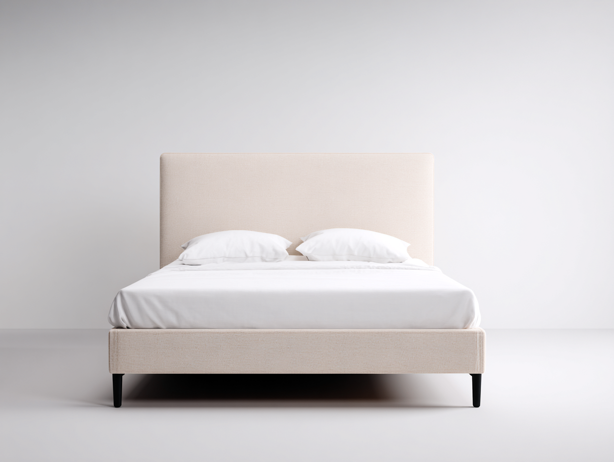 Ce lit double en tissu est conçu pour aménager une chambre à coucher à l'esthétique sobre et équilibrée. Sa tête de lit droite et épurée structure l'espace nuit avec discrétion, tout en offrant un cadre confortable adapté à un usage quotidien.